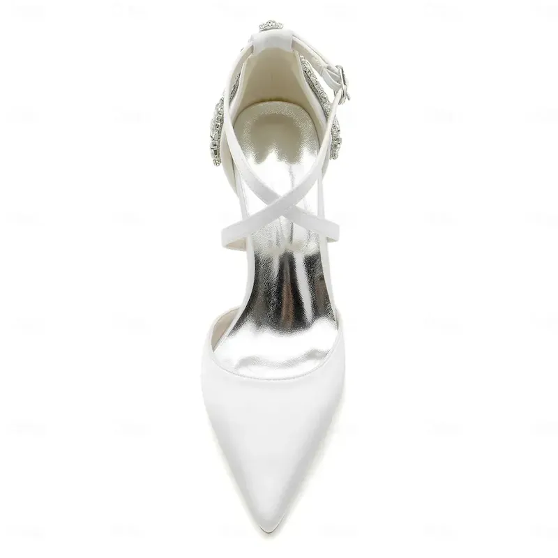 Elegant Navy Blue Satin Heels for Brides – Crystal Decorated Strappy Wedding Shoes Perfect for Cocktail and Evening Parties 2025