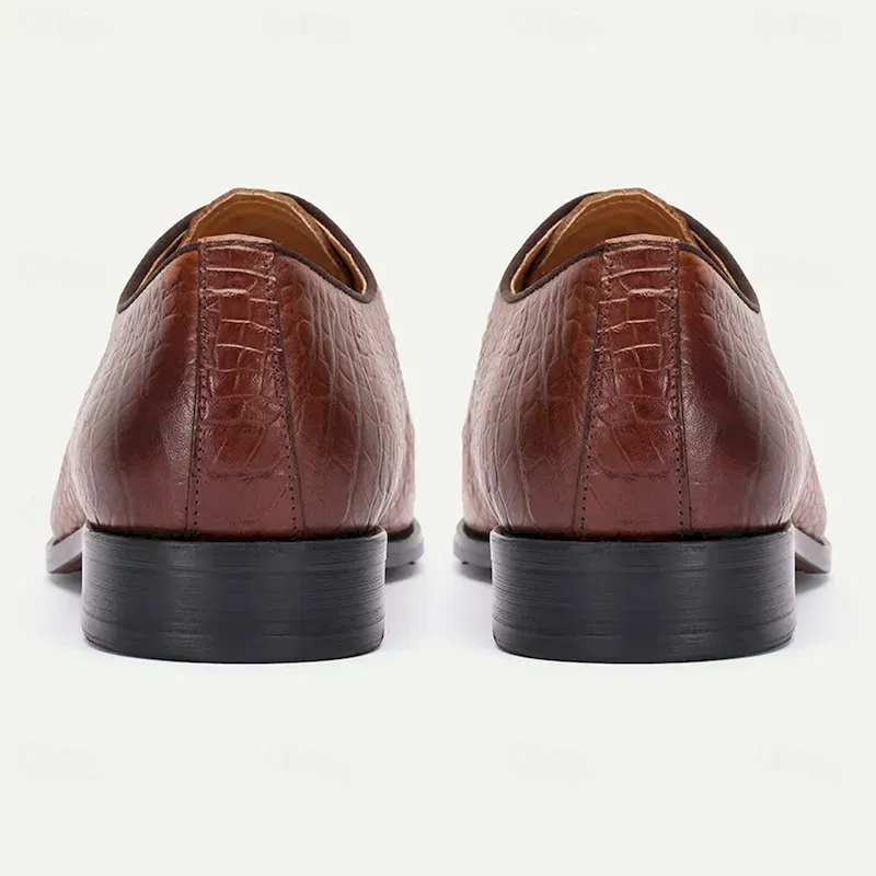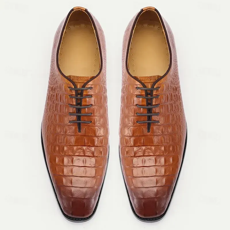 Men’s Oxfords Crocodile Pattern Leather Shoes in Cognac – Elegant for Business and Kentucky Derby 2025