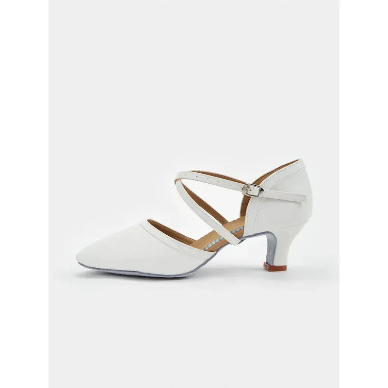 White Faux Leather Dance Shoes with Cross Strap and Buckle – Women’s Ballroom and Latin Dance Heels 2025