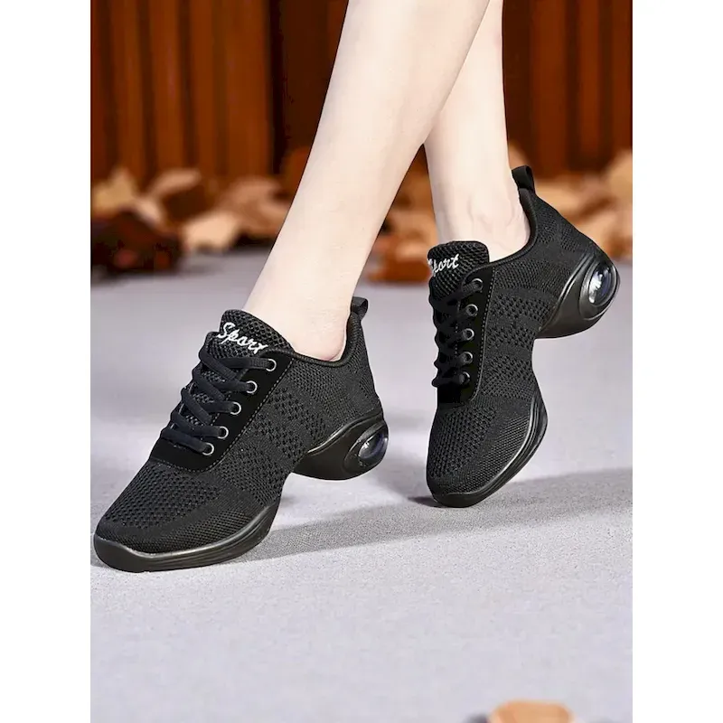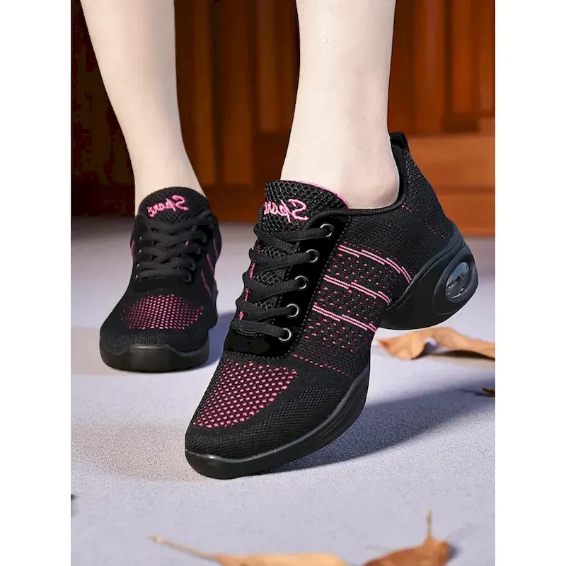 Women’s Black Pink Mesh Jazz Dance Sneakers – Lightweight Breathable Professional Hip-Hop Fitness Dance Shoes with Shock-Absorbing Sole for Training a