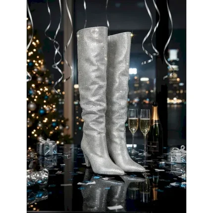 Women’s Brown Embroidered Western Knee-High Boots – Vintage Pointed Toe Faux Leather Cowboy Style for Fall Streetwear, Festivals and Country-Themed Ou