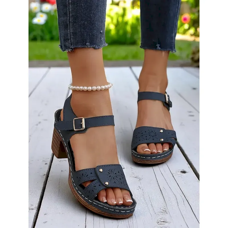 Women’s Hollow-Out Buckled Heeled Sandals – Breathable Retro Summer Footwear for Garden Date, Workwear and Countryside Getaways 2025